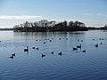 The Mere is the last of many lakes in the Holderness area – the remainder had been drained by the late 19th century.[12] At the sea remains of a submarine forest were found in a bed of peat found around halfway between cliff and lower water.[13] The trees found were oak, alder and willow.[14] A variety of fossils have been found in the deposits, including those of the extinct Eurasian cave lion (Felis spelaea), Woolly Mammoth (Elephas primigenius), Aurochs (Bos primigenius) as well as Red Deer (Cervus elaphus) and Horse species (Equus).[15] Molluscs found in the subterranean gravel appear to have been freshwater species.[10] It is thought the source of the submarine forests recorded on the coast at Hornsea may have been a second mere on the eastern side of the present lake which was silted and was lost to the sea at some point.[5]