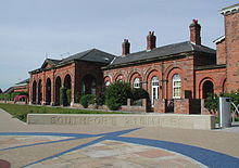 A railway line was sanctioned in 1846 from Arram to Hornsea in 1846, but was unbuilt following the fall of George Hudson and the financial problems of the York and North Midland Railway.[74] In 1861 a company was formed to promote railways in the East Riding of Yorkshire, and obtained an act for a 13 miles (21 km) line from Wilmington, Kingston upon Hull to Hornsea in 1862. Joseph Armitage Wade, a Hull timber merchant and Hornsea resident was a key promoter of the line. Work began October 1862, with the line completed early 1864 the Hull and Hornsea Railway.[75][76] Hornsea Railway Station was designed by Rawlins & Gould, built in brick with sandstone, with five central bays surrounded by two five bay extensions on either side – the station is still extant and was listed 1979.[77] Hornsea Bridge railway station was built short of the Hornsea Town terminus, and functioned as a goods station as well as a passenger station.[78] The new railway not only benefited the resort, but also enabled Hornsea to function as a dormitory suburb to Hull.[73]