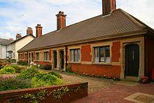 Early 20th century additions to the town included a Church Institute built 1906–07; and the Pickering Almshouses (see Christopher Pickering) built 1908; both on Newbegin.[64] A convalescent home, Gregson Court was built on Cliff Road in 1908–09.[95] The early 20th century house, 'Farrago', on Wilton Road, built with a bolted steel frame with brick and stone dressing by builder David Reynard Robinson is now listed.[96][97] Hornsea Golf Course was established a mile south of the town in 1910 to a design by Sandy Herd. (The course is outside the modern parish in Mappleton.)[98]