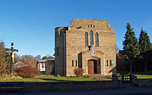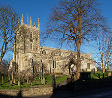The church of Saint Nicholas dates to the 13th century, with alterations in the 14th and 15th centuries. The church is of cobbles plus stone dressings, much of it in the perpendicular style. The font, some memorials and an effigy also date to the 13th century,[40][41] a restored former medieval market cross is found in the churchyard.[42][43] The church tower was formerly surmounted by a spire, reported as ruinous in the early 1710s and said to have fallen down in 1733.[44] The church was extensively restored in the 1860s by George Gilbert Scott, including rebuilding of the upper tower; further work was done at the beginning of the 20th century by Brodrick, Lowther & Walker.[41] The medieval rectory of the church was located to the north, at a moated site – some earthwork remains are still extant, and were incorporated into the public Hall Garth Park in the 19th century.[45] Other remnants of the medieval town include a c. 14th century wayside cross on Southgate, probably formed of remnants of other medieval crosses.[46][47]