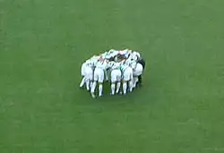 The huddle became more widely used in cricket after the India national team used it to great success during the 2003 Cricket World Cup. The England team has imitated this technique with some success, notably in the 2005 Ashes series.