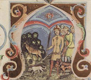 The brothers Hunor and Magor were the legendary forefathers of the Huns and the Hungarians, or Magyars, according to most Hungarian chronicles.[4] Simon of Kéza's Gesta Hunnorum et Hungarorum, written in the 1280s, contains the first version of their legend.[5][3] Other Hungarian chronicles wrote, the brothers were the sons either of Ménrót or of Magog, king of the Scythians.[4][6] Their mother was Ménrót's wife, Eneth, whose name was derived from the Hungarian word for hind (old eneγ, now ünő), according to Simon of Kéza.[7][5] Historians Zoltán Kordé and Gyula Kristó say that her name shows, the Hungarians once regarded a hind as their totemistic ancestor, but this pagan concept was reinterpreted after their conversion to Christianity in the 11th century.[8][9]