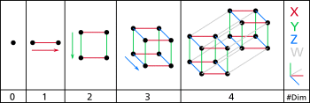 This can be generalized to any number of dimensions. This process of sweeping out volumes can be formalized mathematically as a Minkowski sum: the d-dimensional hypercube is the Minkowski sum of d mutually perpendicular unit-length line segments, and is therefore an example of a zonotope.
