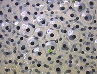 The name refers to the amnion, an embryonic membrane produced during the fetal development of amniotes which serves to transport oxygen into the egg and expel carbon dioxide. As the name suggests, anamniotes do not develop an amnion during fetal life and are able to exchange oxygen, carbon dioxide and waste metabolites with the surrounding water.[1] The water helps in the diffusion of waste products (particularly ammonia), allowing the embryo to complete embryonic development without being poisoned by their own waste products.[2] During their development, all anamniote classes pass through a stage which resembles fish, thus indicating their close physiological relationship.