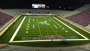 Independence Stadium is a stadium owned by the city of Shreveport, Louisiana. It used to be known as "State Fair Stadium"; it is the site of the annual Independence Bowl post-season college football game, initially (1976) the Bicentennial Bowl. Before that, it was the home venue of the Shreveport Steamer of the short-lived World Football League (1974–75). It also served as a neutral site for the annual Arkansas–LSU football rivalry from 1925 to 1936. The stadium is also host to numerous high school football games and soccer matches, since many schools in Shreveport lack an on-campus facility. Independence Stadium also hosted the Louisiana High School Athletic Association state football championship games in 2005 after the Louisiana Superdome suffered heavy damage from Hurricane Katrina. In 1994–95, Independence Stadium was home to the Shreveport Pirates of the Canadian Football League, which was undergoing US expansion at the time. In the late 1990s, the stadium capacity was expanded from approximately 40,000 to 50,832. In 2005, to meet accommodations of the upcoming Independence Bowl in 2006, the stadium went through a renovation to extend the capacity from 52,000 to 59,000. Then in 2008, the City of Shreveport created an entire new section of the stadium. This portion would allow the stadium capacity to be expanded only if need be. This expanse put the total capacity at 63,000.[23] This was part of a grander upgrading plan that improved all aspects of the facility, from concourses to playing surface.