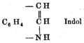 Indole chemistry began to develop with the study of the dye indigo. Indigo can be converted to isatin and then to oxindole. Then, in 1866, Adolf von Baeyer reduced oxindole to indole using zinc dust.[4] In 1869, he proposed a formula for indole (left).[5]