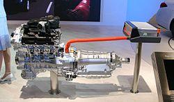 The hybrid includes one electric motor and two clutches to allow the 3.5L V6 (302 hp (225 kW) and 258 lb⋅ft (350 N⋅m)) gas engine and electric motor to drive the rear wheels simultaneously. The lithium-ion battery pack will come from the Infiniti Essence.[29] The VQ35HR 3.5 L V6 Hybrid utilizes the Atkinson cycle. The electric motor, installed in parallel between the engine and the transmission, produces 68 PS (50 kW; 67 bhp) from 1.3kWh lithium-ion batteries that are expected to have a service life of 10 years. The batteries are installed upright behind the rear seats. The main sacrifices are that the luggage compartment space is reduced, the hybrid's rear seats are fixed in place and cannot fold down, and all-wheel drive is not available.[26] One benefit of the battery placement though, is that it leaves the hybrid with a 51/49 front to rear weight distribution.