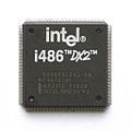 The Intel i486DX2, rumored as 80486DX2 (later renamed IntelDX2) is a CPU produced by Intel that was introduced in 1992. The i486DX2 was nearly identical to the i486DX, but it had additional clock multiplier circuitry. It was the first chip to use clock doubling, whereby the processor runs two internal logic clock cycles per external bus cycle. An i486 DX2 was thus significantly faster than an i486 DX at the same bus speed thanks to the 8K on-chip cache shadowing the slower clocked external bus.