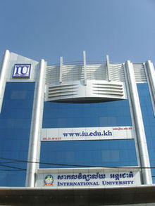 International University (Khmer: សាកលវិទ្យាល័យអន្តរជាតិ, IU) is a private higher education institution specializing in medicine and medical science. Established in 2002, IU is recognized and nationally accredited by the Royal Government of Cambodia, the Royal Cambodian Ministry of Education, Youth & Sports and the Accreditation Committee of Cambodia (ACC). International University education standards are recognized by transnational medical institutions such as the Asia-Europe Foundation, ASAIHL, UN World Health Organization - including accreditation with the U.S.-based ECFMG, FAIMER and IMED enabling medical school graduates to take the three complete steps of the USMLE and on successful completion can register for physician residency and practice medicine in the United States. The medium of instruction used at IU are English and Khmer.
