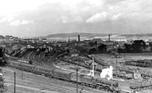 In 1865 the station was enlarged. The platform was lengthened to 300 feet (91 m) and a shed added which was 300 feet (91 m) long, 51 feet (16 m) wide and 20 feet (6.1 m) high. There were double lines for north and south traffic.[6]