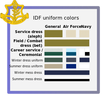 - Field dress (Madei Bet)[2] - "Class B" uniform; worn into combat, training, work on base.