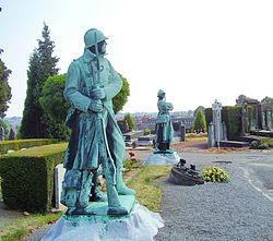 In the pelouse d'honneur in Block A are buried First World War soldiers from Belgium, France, Italy, Russia and Great Britain (twelve identified soldiers), who died mainly as prisoners of war.[2]