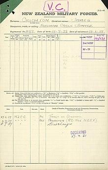 - ^ a b "Four Victoria Cross Men". New Zealand Herald (Vol. LVI, issue 13170). 8 April 1919. Retrieved 7 March 2018.