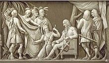 The delegation arrived on June 16,[63] and met George II and his family at Kensington Palace. Oglethorpe was widely acclaimed in London, although his expansionism was not welcomed in all quarters. The Duke of Newcastle, who directed British foreign policy, had tried to restrain James Oglethorpe's efforts in the colony for fear of offending the Spanish, whom Newcastle wished unsuccessfully to court as an ally. Newcastle eventually relented, and became a supporter of the colony, admitting "it will now be pretty difficult to give up Georgia".[68] The colony's existence was one of several disputes which worsened Anglo-Spanish relations in the late 1730s.[69] When Tomochichi returned to England, he said that parting with Oglethorpe was "like the day of death".[70] In March 1735 the trustees requested 51,800 pounds from parliament, upon the urging of Othelthorpe, in part to construct forts along the Altamaha River. 26,000 pounds were eventually budgeted and the trustees approved construction of two forts on the river.[71]