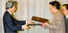 The Japan–North Korea Pyongyang Declaration was signed in 2002, and was the result of a systematic Japan–North Korea summit meeting. Pyongyang declaration was initiated with the goal of creating diplomacy between the two nations where previously this was non-existent due to historic hostility. The aim of the declaration was to provide low-interest long term loans to North Korea as well as economic assistance (including humanitarian aid) in accordance with the moratorium of nuclear missile development which has been in place since 1999.[1] However, in current developments this category of the agreement has been breached. (See North Korea and weapons of mass destruction).The Japanese government was aiming to achieve the return of Japanese abducted citizens which prior to the declaration was unacknowledged.