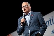 On March 1, 2019, Inslee announced he would run for president, but kept open the possibility of running for a third term if his presidential campaign failed. Several potential Democratic gubernatorial candidates, including state Attorney General Bob Ferguson, Commissioner of Public Lands Hilary Franz, and King County Executive Dow Constantine, were all waiting to announce campaigns until Inslee made his decision.[57] As Inslee's presidential campaign failed to gain traction during the summer of 2019, he was pressured to drop out and make his gubernatorial plans clear to the other potential candidates.[58] On August 21, 2019, Inslee dropped out of the presidential campaign and announced the next day he would run for reelection as governor.[59][60][61]
