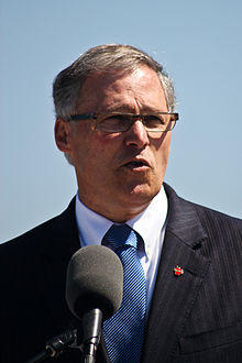 On June 27, 2011, Inslee announced his candidacy for governor of Washington.[50] His campaign focused on job creation, outlining dozens of proposals to increase job growth in clean energy, the aerospace industry, and biotechnology. He also supported a ballot measure to legalize gay marriage, which passed, and opposed tax increases.[51] He won election with 52% of the vote, a three-point margin over his Republican opponent, Rob McKenna.[52]