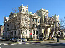 - ^ Goodnough, Abby. "Once Upon a Time, When High Schools Were Palaces", The New York Times, October 6, 1996. Accessed December 21, 2011. "NINETY years ago, an enormous Beaux Arts building went up on a hill overlooking the Hudson River. It had Corinthian columns, terrazzo floors and a vestibule lined with English marble. It could have passed for a palace, or at least a palatial estate. But it was neither. It was, in fact, William L. Dickinson High School, the first public secondary school in Jersey City.... When it opened in 1906, Dickinson had a 2,000-seat auditorium used not just for school functions but for political debates, plays and concerts."
