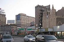 The Heights or Jersey City Heights is a district in the north end of Jersey City atop the New Jersey Palisades overlooking Hoboken to the east and Croxton in the Meadowlands to the west. Previously the city of Hudson City, The Heights was incorporated into Jersey City in 1869.[51] The southern border of The Heights is generally considered to be north of Bergen Arches and The Divided Highway, while Paterson Plank Road in Washington Park is its main northern boundary. Transfer Station is just over the city line. Its postal area ZIP Code is 07307. The Heights mostly contains two- and three-family houses and low rise apartment buildings, and is similar to North Hudson architectural style and neighborhood character.[94]