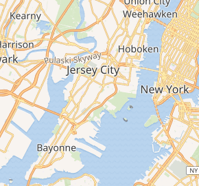 Jersey City is bordered to the east by the Hudson River, to the north by Secaucus, North Bergen, Union City and Hoboken, to the west, across the Hackensack River, by Kearny and Newark, and to the south by Bayonne.[73][74][75]