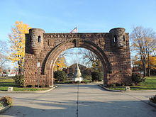 Bergen-Lafayette, formerly Bergen City, New Jersey, lies between Greenville to the south and McGinley Square to the north, while bordering Liberty State Park and Downtown to the east and the West Side neighborhood to the west. Communipaw Avenue, Bergen Avenue, Martin Luther King Drive, and Ocean Avenue are main thoroughfares. The former Jersey City Medical Center complex, a cluster of Art Deco buildings on a rise in the center of the city, has been converted into residential complexes called The Beacon.[85] Completed in 2016 at a cost of $38 million, Berry Lane Park is located along Garfield Avenue in the northern section of Bergen-Lafayette; covering 17.5 acres (7.1 ha), it the largest municipal park in Jersey City.[86]