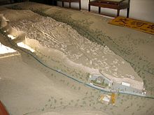 Jiaohe or Yarkhoto is a ruined city in the Yarnaz Valley, 10 km west of the city of Turpan in Xinjiang Uyghur Autonomous Region, China.[1] It was the capital of the Jushi Kingdom. It is a natural fortress located atop a steep cliff on a leaf-shaped plateau between two deep river valleys.