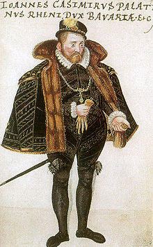 John Casimir, Count Palatine of Simmern (German: Johann Casimir von Pfalz-Simmern) (7 March 1543 – 16 January [O.S. 6 January] 1592[1]) was a German prince and a younger son of Frederick III, Elector Palatine. A firm Calvinist, he was a leader of mercenary troops in the religious wars of the time, including the Dutch Revolt. From 1583–1592 he acted as regent for his nephew, Elector Palatine Frederick IV.