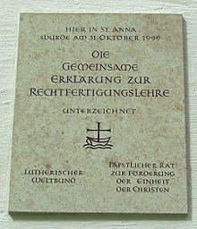 - ^ "Joint Declaration on the Doctrine of Justification". Pontifical Council for Promoting Christian Unity. 31 October 1999. Retrieved 4 July 2017.