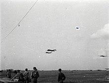 At the outbreak of the Second World War, South Africa's Ju 86Zs were militarised and armed as bombers with defensive guns and external bomb racks. These aircraft were initially used for coastal patrols along with the sole Ju 86K-1, playing an important role in the interception of the German blockade runner SS Watussi in December 1939. In May 1940, they were used to re-equip No. 12 Squadron SAAF, which was deployed in the East African Campaign from June 1940. It flew its first bombing missions on 14 June 1940.[13] As more modern aircraft became available, the South African Ju 86s were passed from squadron to squadron, seeing their last use with No. 22 Squadron SAAF, which used it along with the Avro Anson in the coastal reconnaissance role, finally retiring its Ju 86s in September 1942.[14]