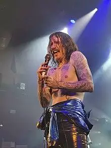 Justin David Hawkins (born 17 March 1975) is an English musician, singer and songwriter, best known for being the lead singer and lead guitarist of the Darkness. Heavily influenced by classic rock bands of the 1970s and 1980s (particularly Queen, Aerosmith, Def Leppard and AC/DC), Hawkins is noted for his falsetto singing voice and on-stage persona. He was also the lead singer and guitarist for the band Hot Leg, formed in 2008, and now on hiatus.