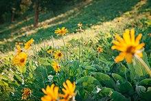 Kelowna's official flower is Balsamorhiza sagittata, commonly referred to as arrowleaf balsamroot.[19]