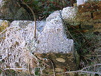 Dobie also records that a recent building had incorporated in its gable end a stone from the abbey representing scripture scenes.[58] This fragment of a more ancient cross, St Winning's Cross, is said to have been originally erected at the first church built by Saint Winning and was dedicated to Saint Bridget and to the Virgin Mary. Miracles are said to have taken place at it.[59]