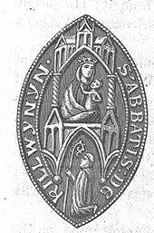 Kilwinning was a Tironensian Benedictine monastic community, named after Tiron in the diocese of Chartres. The abbey was dedicated to Saint Winning and the Virgin Mary, and founded sometime between 1162 and 1188 with monks coming from Kelso.[1] The patron is not known for certain, but it may have been Richard de Morville, Lord of Cunninghame and Great Constable of Scotland, perhaps with the backing and assistance of King William of Scotland. A story developed that another Sir Richard de Morville who was involved in the murder of Thomas Becket was the founder of the abbey, however despite the likelihood of the families being the same, the dates of the events make this connection impossible.[2] A connection that does exist is the founding of Arbroath Abbey in 1178, also a Tironensian abbey, in memory of Becket by William the Lion (1165–1214).[3]
