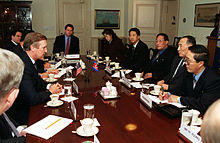 In 2002, Kim Jong-il declared that "money should be capable of measuring the worth of all commodities."[38] These gestures toward economic reform mirror similar actions taken by China's Deng Xiaoping in the late 1980s and early 90s. During a rare visit in 2006, Kim expressed admiration for China's rapid economic progress.[39]