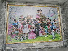 The prevailing point of view is that the people's adherence to Kim Jong-il's cult of personality was solely out of respect for Kim Il-sung or out of fear of punishment for failure to pay homage.[47] Media and government sources from outside North Korea generally support this view,[48][49][50][51][52] while North Korean government sources aver that it was genuine hero worship.[53] The song "No Motherland Without You", sung by the KPA State Merited Choir, was created especially for Kim in 1992 and is frequently broadcast on the radio and from loudspeakers on the streets of Pyongyang.[54]