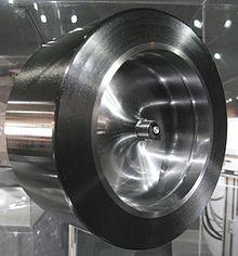 The first of these systems to be revealed was the Flybrid.[4] This system weighs 24 kg (53 lbs) and has an energy capacity of 400 kJ after allowing for internal losses. A maximum power boost of 60 kW (81.6 PS, 80.4 HP) for 6.67 seconds is available. The 240 mm (9.4 in) diameter flywheel weighs 5.0 kg (11 lbs) and revolves at up to 64,500 rpm. Maximum torque at the flywheel is 18 Nm (13.3 ftlbs), and the torque at the gearbox connection is correspondingly higher for the change in speed. The system occupies a volume of 13 litres.[4]