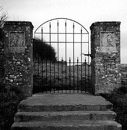 The most suitable field entrance for many villages was a wicket or field gate of English oak properly framed and pinned, hung to oak posts with hinges wrought by the local blacksmith. Where iron gates were more suitable over-elaboration was to be avoided. Designs had to be simple, made of wrought iron, and of such a type as could easily be opened and closed by children. Consideration too had to be given that the gates were strong enough to withstand rough and constant usage. The memorial panels were to be set on the upper portion of each gate pier.