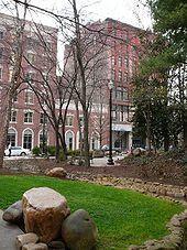 The first people to form substantial settlements in what is now Knoxville were indigenous people who arrived during the Woodland period (c. 1000 B.C. – A.D 1000).[23] One of the oldest artificial structures in Knoxville is a burial mound constructed during the early Mississippian culture period (c. A.D. 1000-1400). The earthwork mound has been preserved, but the campus of the University of Tennessee developed around it.[24]