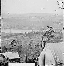 Burnside arrived in early September 1863. Like the Confederates, he immediately began fortifying the city. The Union forces rebuilt Fort Loudon and erected 12 other forts and batteries flanked by entrenchments around the city. Burnside moved a pontoon bridge upstream from Loudon, allowing Union forces to cross the river and build a series of forts along the heights of South Knoxville, including Fort Stanley and Fort Dickerson.[46]