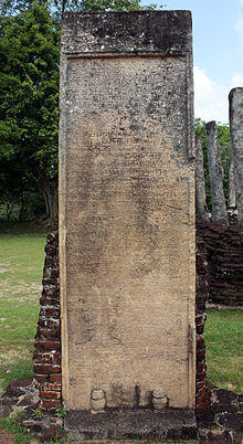 It is of interest to note that Vijayabahu married Lilavati, the daughter of Jagatipala, a former ruler of Rohana, after she escaped from the Cholas and returned to the island kingdom.[92] Jagatipala was originally a prince of Ayodhya who had migrated to Lanka and become ruler of Rohana. He was slain on the battlefield during the Lankan expeditions of Kulottunga's predecessor, Rajadhiraja Chola I, when the Sinhalese kingdom lost four crowns in quick succession.[93] At that time, this princess along with her aunt or mother was taken captive by the Chola forces. These events are described in great detail in the Mahavamsa and in an inscription of Rajadhiraja Chola I.[94]