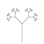 The push and pop refer to a LIFO stack (more technical grammar would have separate symbols for "push position" and "turn left"). When the turtle interpretation encounters a '[', the current position and angle are saved, and are then restored when the interpretation encounters a ']'. If multiple values have been "pushed," then a "pop" restores the most recently saved values. Applying the graphical rules listed above to the earlier recursion, we get: