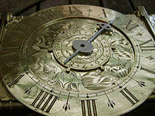 There are two theories of the origin of the name "lantern clock". One is that it refers to brass, the main metal of which English lantern clocks are made. Clocks were first made on the continent, at first of iron with iron wheels, and then later with brass wheels. Later still, in France, Belgium and The Netherlands, clocks began to be made from brass.[2] Brass alloys were then called latten, and it seems likely that brass clocks would have been called "latten clocks" (or "latten horloge" or "latten uhr" in the native languages) to distinguish them from iron clocks, and that "lantern" could be an English interpretation or corruption of latten. The other is that the name derived from the shape; the clock resembles a rectangular lantern of that period, and like a lantern was hung on the wall.