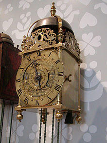 A lantern clock is a type of antique weight-driven wall clock, shaped like a lantern. They were the first type of clock widely used in private homes.[1] They probably originated before 1500 but only became common after 1600;[1] in Britain around 1620. They became obsolete in the 19th century.