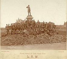 Founded in Newport, Rhode Island, on May 30, 1880,[1] as the League of American Wheelmen by Kirk Munroe and E. Charles Pratt, it soon became the leading national membership organization for cyclists in the United States.[9] The League was also the governing body for amateur bicycle racing in the U.S. during the late 19th century. The organization's first officers were Charles Pratt as president, T.K. Longstreet as vice president, O.S. Parsons as corresponding secretary, J.F. Furrell as recording secretary, and H.L. Willoughby as treasurer.[10] The board of directors consisted of two from each state having regularly organization clubs.[10] Membership peaked at 103,000 in 1898.[11]