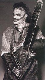 Leatherface is a fictional character in The Texas Chainsaw Massacre film series created by Kim Henkel and Tobe Hooper. He first appeared in The Texas Chain Saw Massacre (1974) as a cannibalistic and mentally unstable mass murderer who, alongside his family, kidnapped, killed, and cooked unsuspecting travellers. The character's name comes from the human skin masks he is almost never seen without, which hide his deformed face. Leatherface's signature weapon is the chainsaw, though he has often times used other tools, such as cleavers and hammers, to murder his victims. Wisconsin murderer Ed Gein, who also wore masks made of human skin,[2] was credited as a large influence for Leatherface and other elements in the original film.