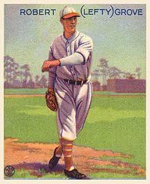 Robert Moses "Lefty" Grove (March 6, 1900 – May 22, 1975) was an American professional baseball pitcher. After having success in the minor leagues during the early 1920s, Grove became a star in Major League Baseball with the American League's Philadelphia Athletics and Boston Red Sox. One of the greatest pitchers in history, Grove led the American League in wins in four separate seasons, in strikeouts seven years in a row, and had the league's lowest earned run average a record nine times. Over the course of the three years from 1929 to 1931, he twice won the pitcher's Triple Crown, leading the league in wins, strikeouts, and ERA, while amassing a 79–15 record and leading the Athletics to three straight AL championships.[1] Overall, Grove won 300 games in his 17-year MLB career. He was elected to the National Baseball Hall of Fame in 1947.