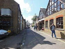 The riverside settlement of 'Old Leigh', or 'The Old Town', is historically significant; it was once on the primary shipping route to London. From the Middle Ages until the turn of the 20th century, Old Leigh hosted the settlement's market square, and high street (known as Leigh Strand). Leigh had grown to become a prosperous port by the 16th century; ships as large as 340 tons were built here for fishing and other purposes. Elizabethan historian William Camden (1551-1623) described Leigh as "a proper fine little towne and verie full of stout and adventurous sailers".[10] By the 1740s however, Leigh's deep water access had become silted up (as attested to by John Wesley) and the village was in decline as an anchorage and port of call.[11]