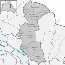 Lichtenberg (German: [ˈlɪçtn̩ˌbɛʁk] ) is the eleventh borough of Berlin, Germany. In Berlin's 2001 administrative reform it absorbed the former borough of Hohenschönhausen.