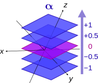 In finite dimensions, a linear functional can be visualized in terms of its level sets, the sets of vectors which map to a given value. In three dimensions, the level sets of a linear functional are a family of mutually parallel planes; in higher dimensions, they are parallel hyperplanes. This method of visualizing linear functionals is sometimes introduced in general relativity texts, such as Gravitation by Misner, Thorne & Wheeler (1973).