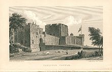 Some parts of the castle were then demolished for use as raw materials in the 19th century to create more or less what is visible to the visitor today. In 1851 the barracks were occupied by the 33rd Regiment of Foot with 10 officers, 150 soldiers, 2 servants and 25 soldiers' wives and children.[7] The Army moved in to take hold of the castle and in 1873 a system of recruiting areas based on counties was instituted under the Cardwell Reforms and the castle became the depot for the 34th (Cumberland) Regiment of Foot and the 55th (Westmorland) Regiment of Foot.[8] Under the Childers Reforms, the 34th and 55th regiments amalgamated to form the Border Regiment with its depot in the castle in 1881.[8] The castle remained the depot of the Border Regiment until 1959, when the regiment amalgamated with the King's Own Royal Regiment (Lancaster) to form the King's Own Royal Border Regiment.[9] The Army Reserve still use parts of the castle: 8 Platoon C Company 4th Battalion the Duke of Lancaster's Regiment are based within the Burma Block alongside a Multi Cap-Badge detachment of the Army Reserve, including Medics, Engineers, Logisticicians, Intelligence and Infanteers from other Cap Badges.[10]